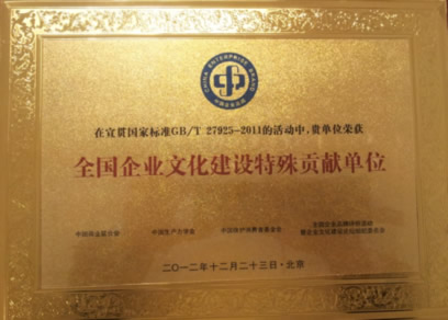 2012年度“全國企業(yè)文化建設(shè)特殊貢獻(xiàn)單位”榮譽(yù)獎牌