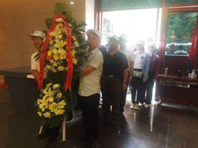 各位黨員向革命先烈敬獻(xiàn)花籃